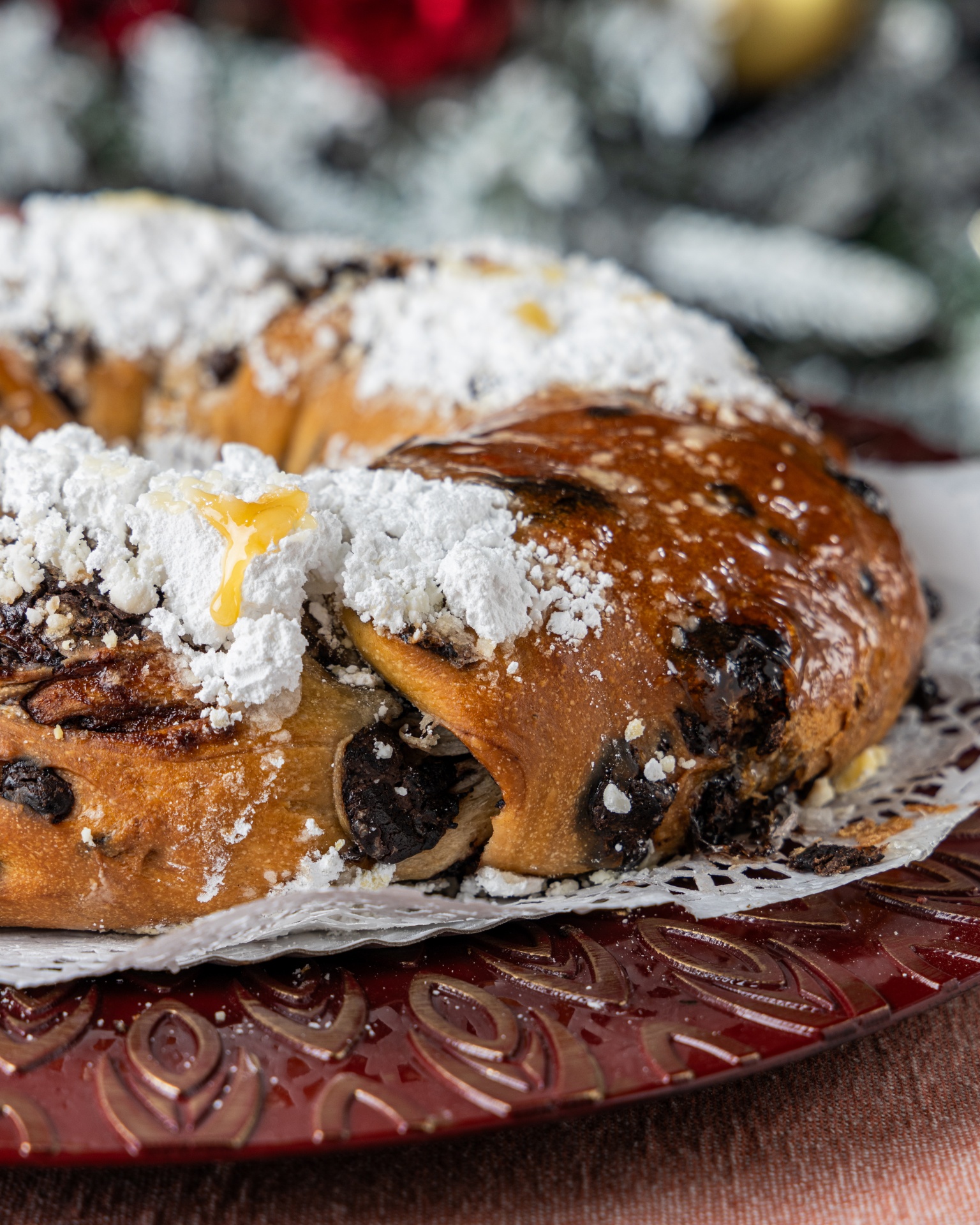 O nosso Bolo Rei para os amantes de chocolate! Com pepitas de chocolate selecionadas e toque de creme de cacau e avelã.