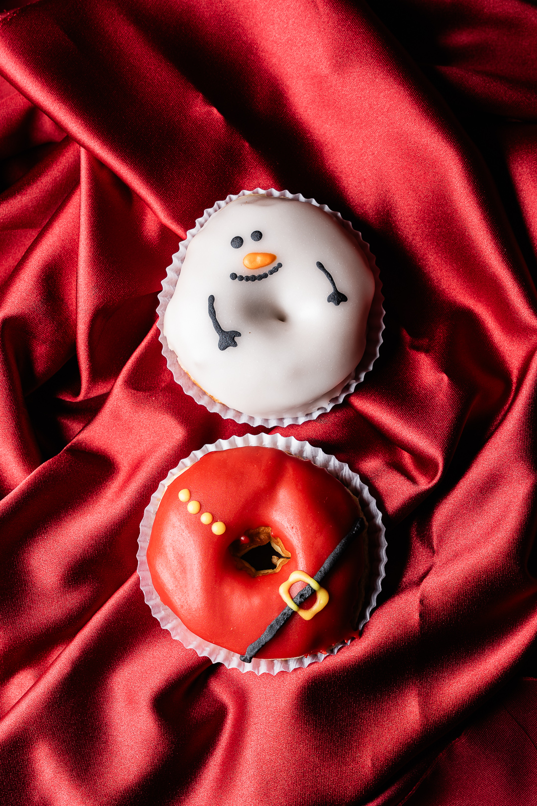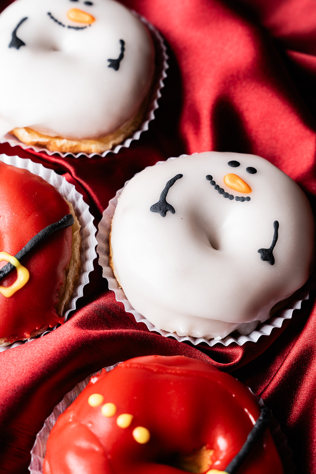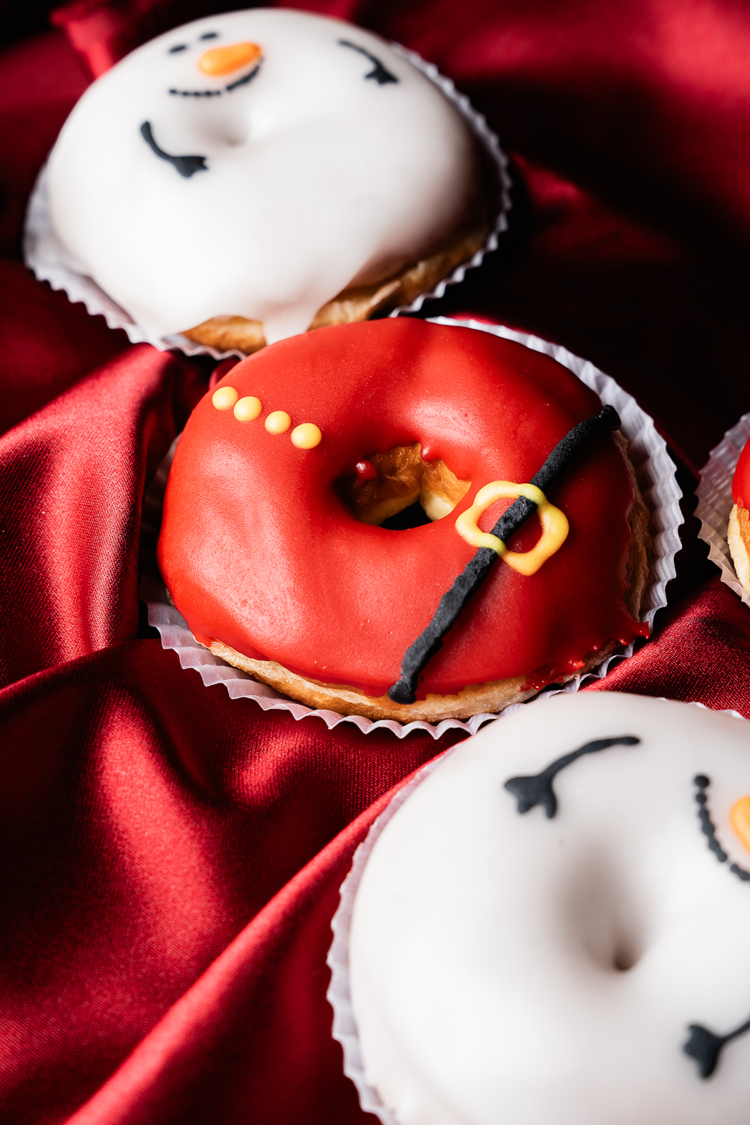 Novidade de Natal! Edição especial dos nossos doughnuts! Inspiração Pai Natal e Boneco de Neve.